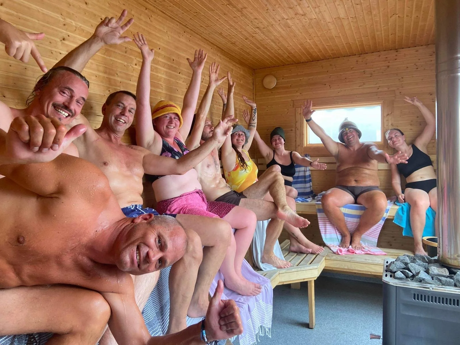 God stemning i badstua under Arendalsuka 2024.